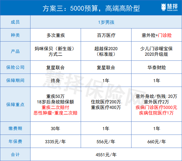 以上就是3款不同预算、不同需求的孩子保险方案,