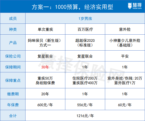 其实,保险也有经济实用型,一样能给到孩子不错的保障,比如下面这套方案,亲爹亲妈们可以参考一下: