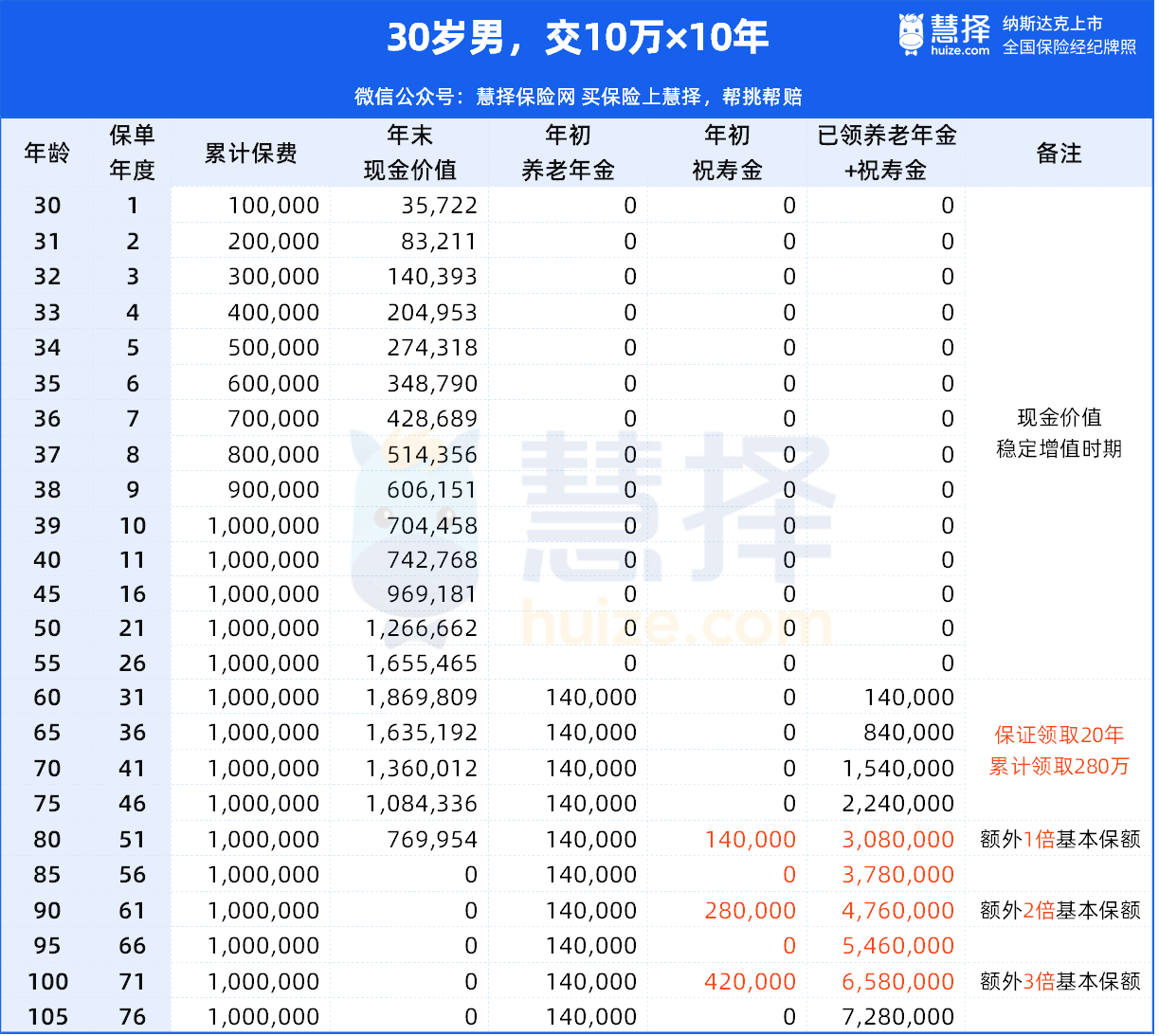 ✔️老杨生存至80岁、90岁、100岁,还能额外领取1倍、2倍、3倍基本保额,越长寿,领取到的现金流越多。