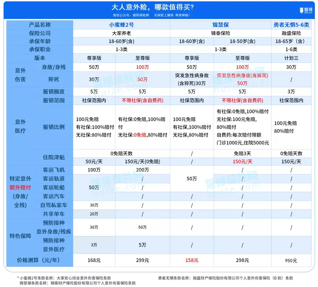 大择对比了市面上最新的意外险,整理了值得入手的几款推荐给大家~