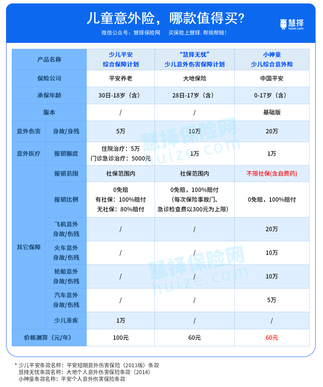 对于小孩来说,一份意外险中,需要重点关注意外医疗报销,