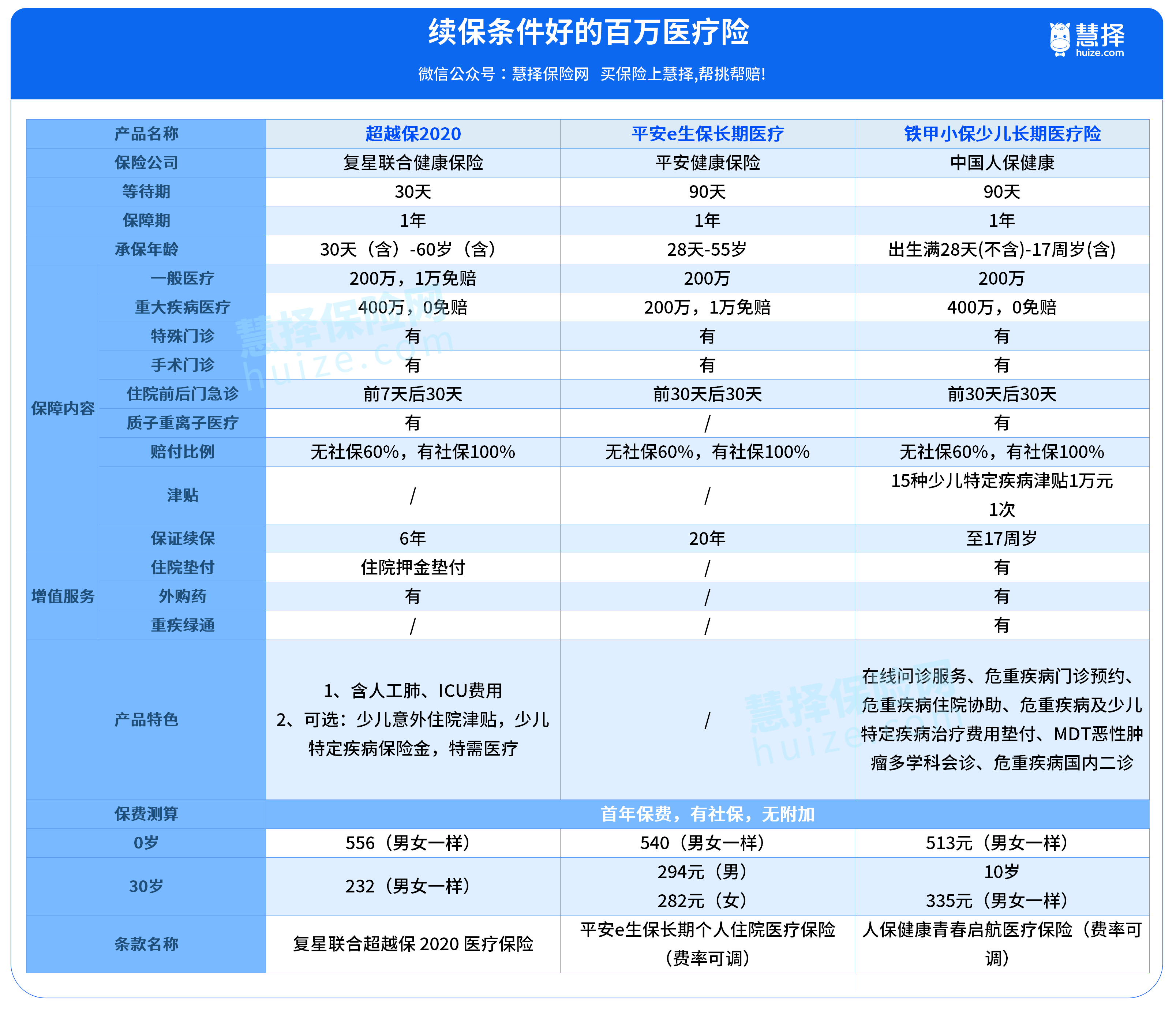 如果想压缩预算/定期高赔付——首选惠宝保