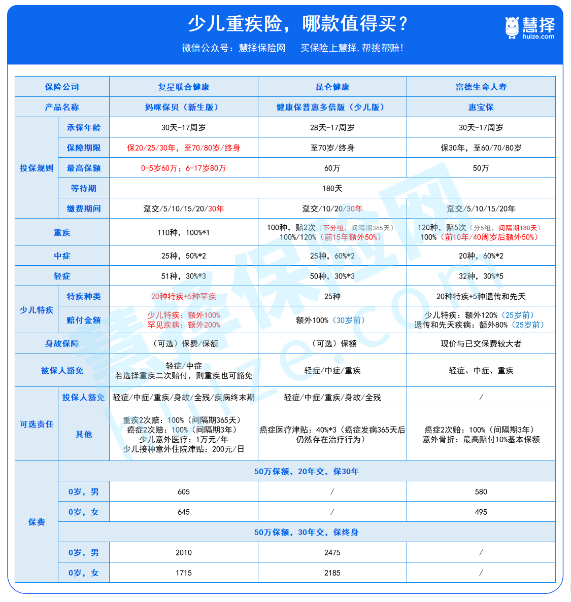 按照少儿重疾险挑选原则,