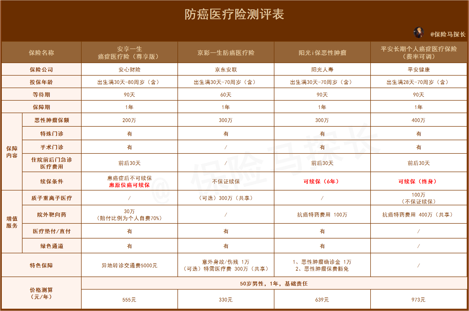 测评内容如下,先看一般医疗的保障,再看特定疾病/重大疾病的保障,最后可以看增值服务,根据价格选择性价比高的。